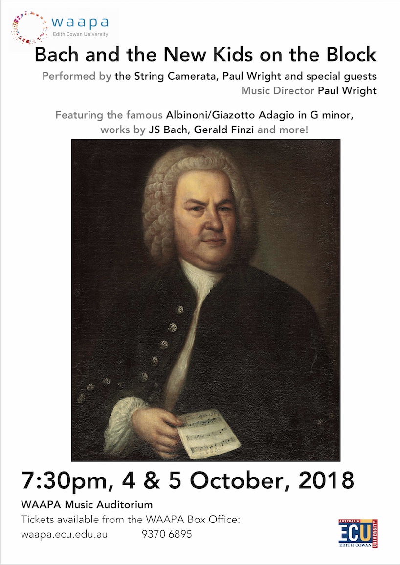 The Camerata will perform ravishing chamber music and gorgeous solo works by JS Bach and others – including Albinoni/Giazotto’s beloved ‘Adagio’ (made famous in the film ‘Gallipoli’), along with music by Ottorino Respighi, Mark Summer and Gerald Finzi.