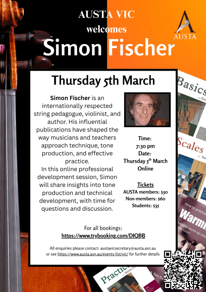 AUSTA VIC welcomes Simon Fischer Simon Fischer is one of the world’s most highly regarded string pedagogues, internationally respected for his profound and lasting impact on string
